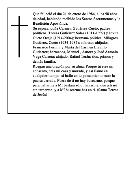 Que falleció el día 21 de enero de 1984, a los 58 años de edad,